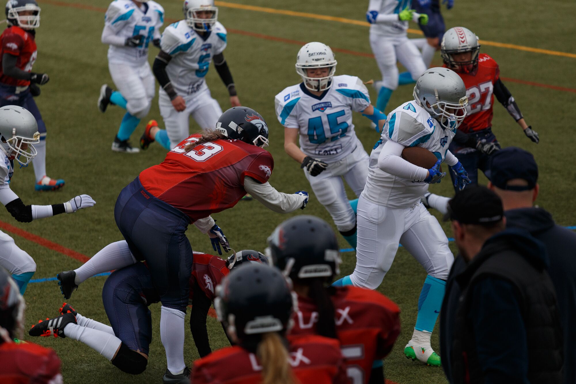 В первый день мы отыграли скриммидж с немками «Red Knights». Это было отличной разминкой перед игрой, девочки были нам по силам, давали продвигаться, но и сами не стояли на месте. Скриммидж прошел отлично, наша команда значительно развеселилась, почувствовав вкус игры после долгого перерыва в практике. После обеда мы уже были вполне разогреты, готовы играть с «Broncos» и вышли на поле в прекрасном настроении.