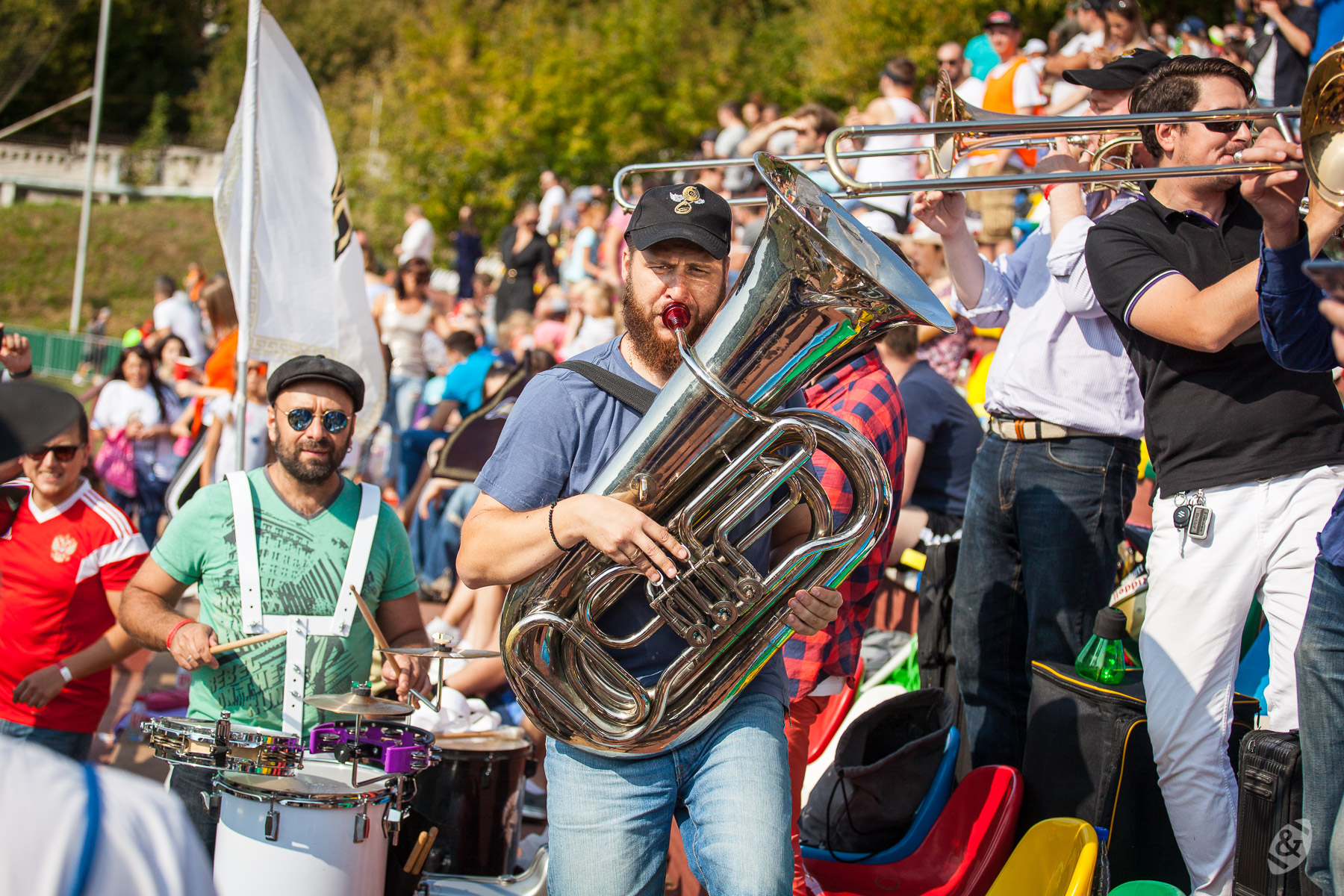 Оркестр на трибунах во время финального матча чемпионата России–2018 между «Спартанцами» и «Патриотами». 2 сентября 2018 г., Москва, Россия. Фото: Михаил Клавиатуров (First & Goal)