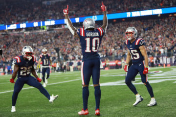 FOXBORO, MA - OCTOBER 4: Sony Michel #26 of the New England Patriots, left, Julian Edelman #11 of the New England Patriots, Josh Gordon #10 of the New England Patriots and Chris Hogan #15 of the New England Patriots celebrate after Gordon scored a touchdown against the Indianapolis Colts during the fourth quarter of the NFL game against the Indianapolis Colts at Gillette Stadium on October 4, 2018 in Foxboro, Massachusetts. (Staff Photo By Matt Stone/ Boston Herald) В матче с «Кольтс» новый принимающий «Пэтриотс» принял две передачи на 50 ярдов, в том числе, 34-ярдовый тачдаун, позволивший хозяевам поля оторваться на два владения. Чуть ранее «Инди» сократил отставание до счета 17-24, но Гордон вновь восстановил фору за 9:19 до конца.