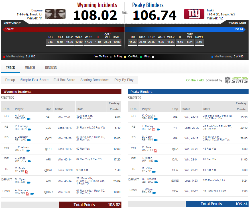 | да | Zeke's abs | NFC South | 102.24 | 122.86 | 225.1 | |