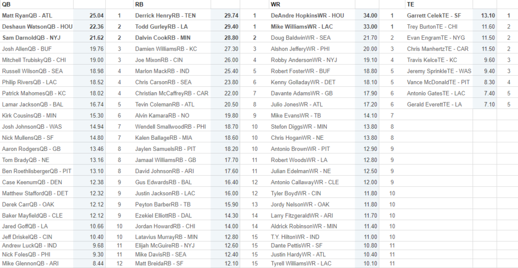 В этой рубрике речь о лучших игроках на 4 позициях по итогам 14 недели. 24 qb, 24 rb, 24 wr и 9 te.