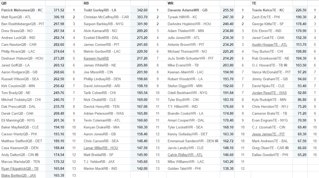 После 14 недель считаем и общий показатель за сезон. 25 qb, 24 rb, 24 wr, 22 te.
