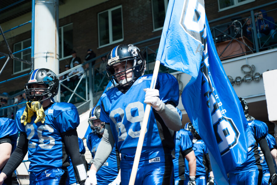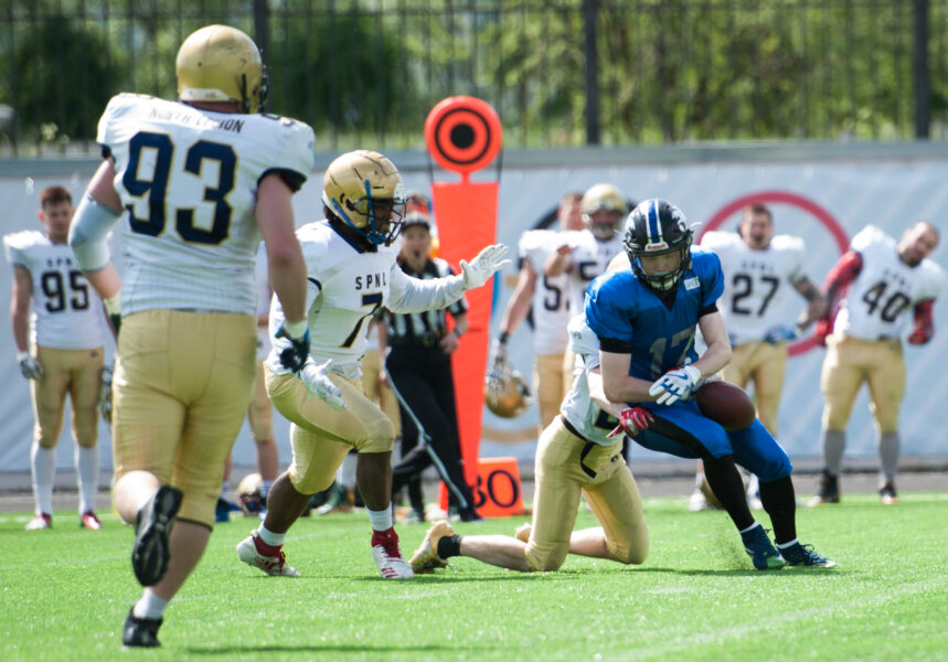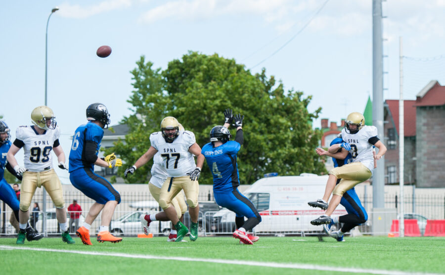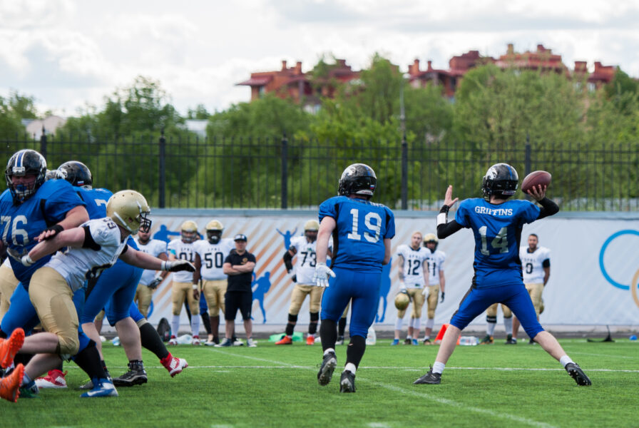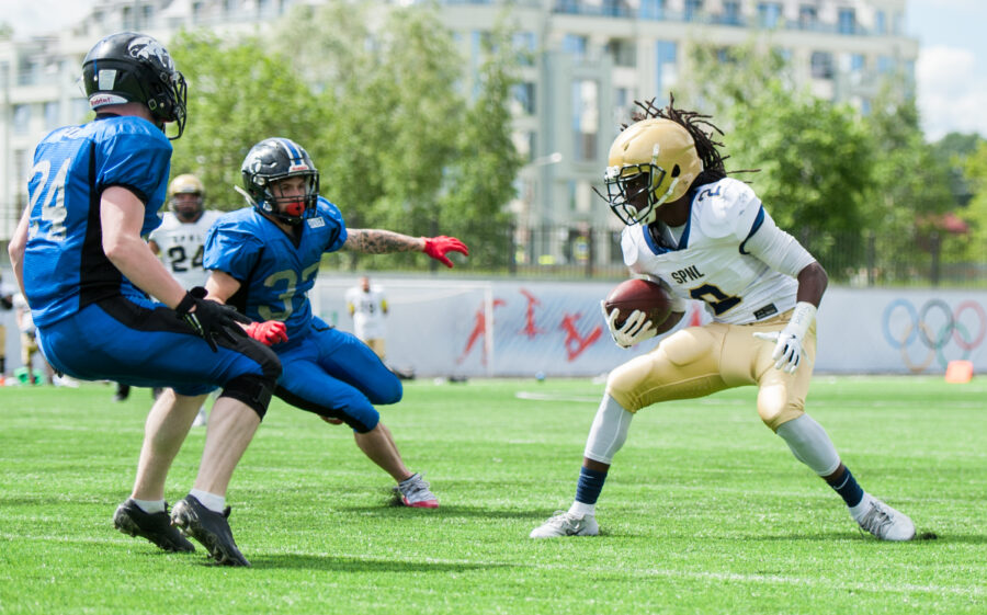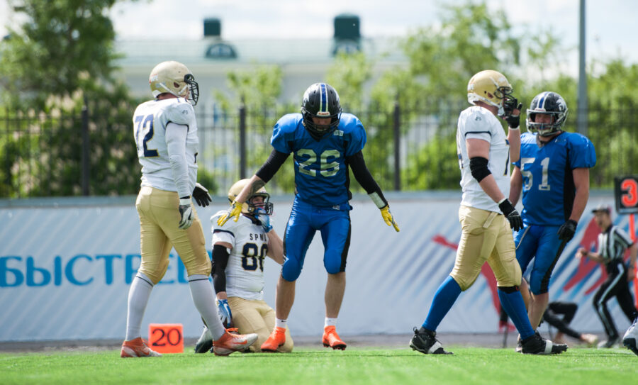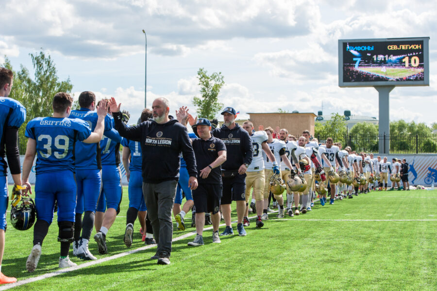 - Эпизод матча 9-го тура Восточно-вропейской суперлиги между «Грифонами» и «Северным Легионом». 1 июня 2019 г., Пушкин, Россия. Фото: Мурад Багандов