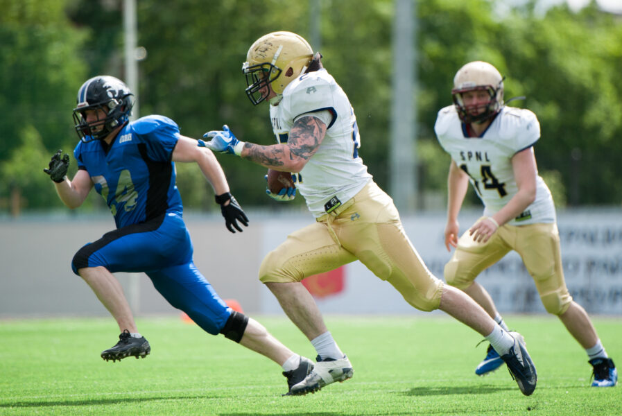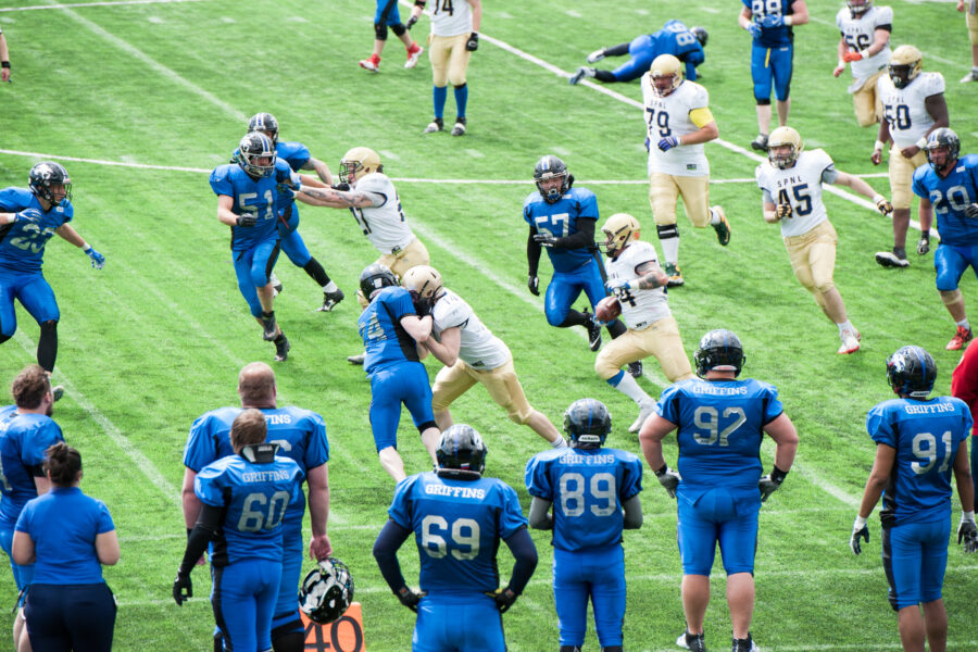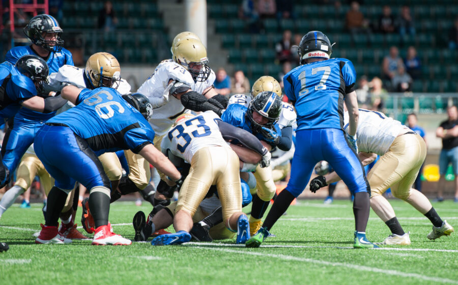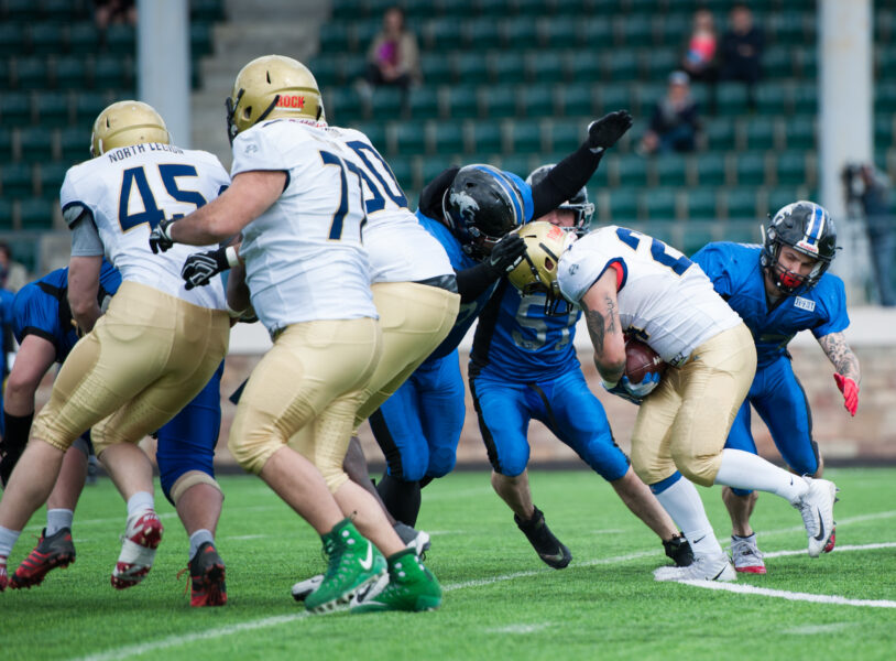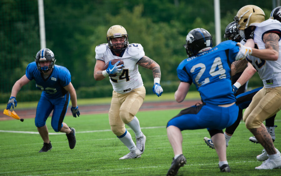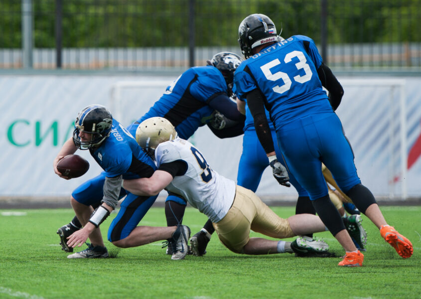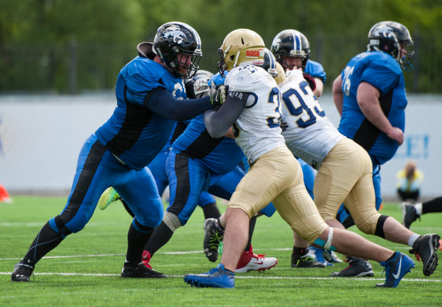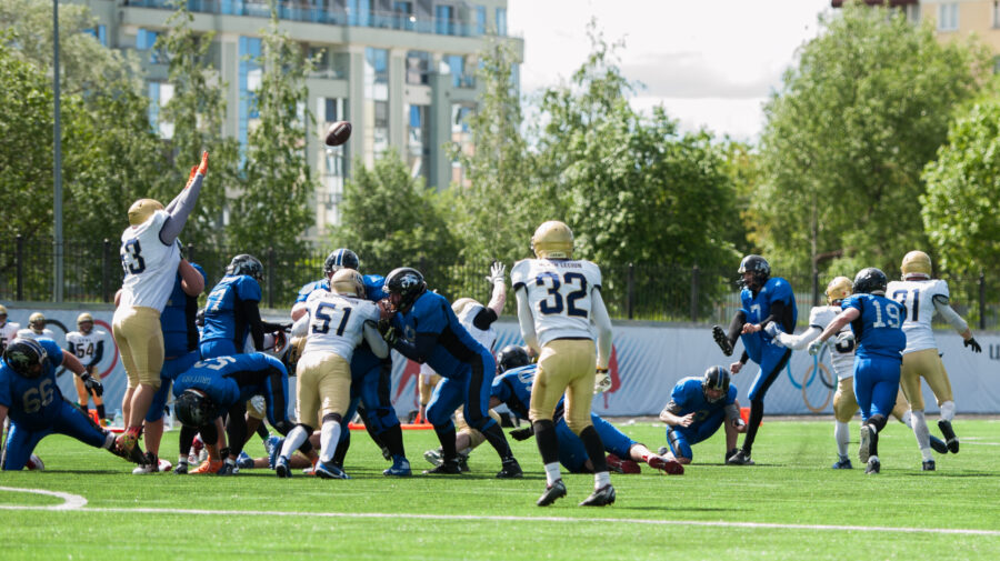- Эпизод матча 9-го тура Восточно-вропейской суперлиги между «Грифонами» и «Северным Легионом». 1 июня 2019 г., Пушкин, Россия. Фото: Мурад Багандов