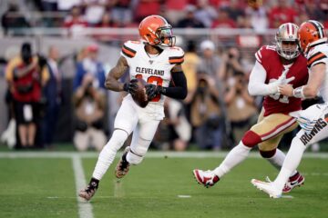 Cleveland Browns wide receiver Odell Beckham rolls out to throw a pass against the San Francisco 49ers. Cary Edmondson, USA TODAY Sports Регулярный сезон
