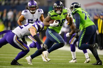 Seahawks running back Rashaad Penny carries the ball against the Vikings. Photo: STEVEN BISIG, USA TODAY SPORTS Регулярный сезон