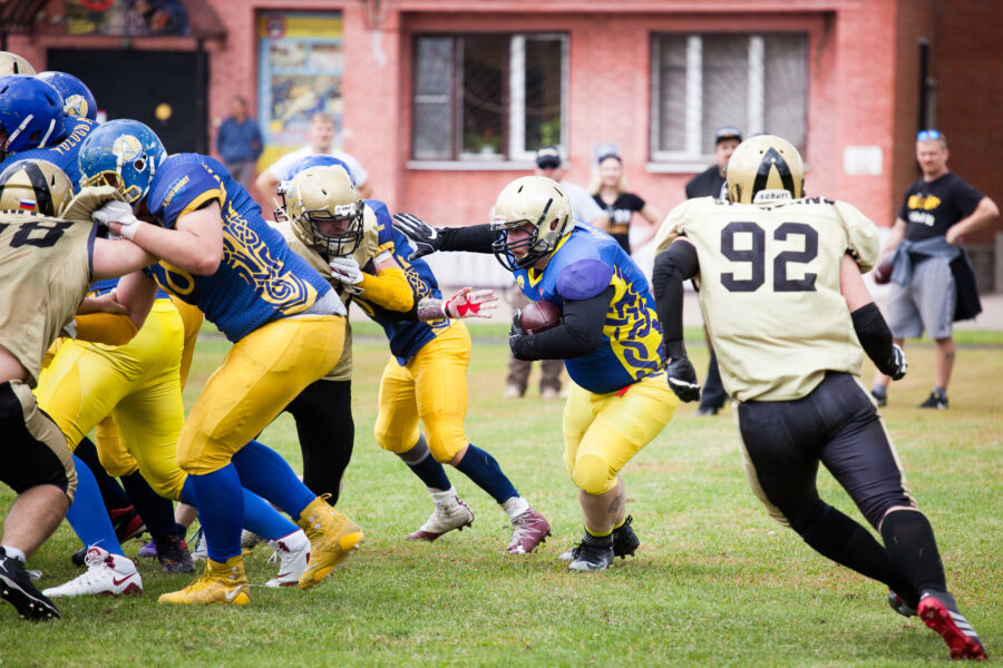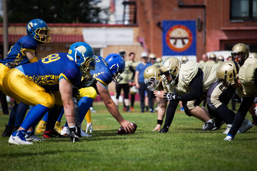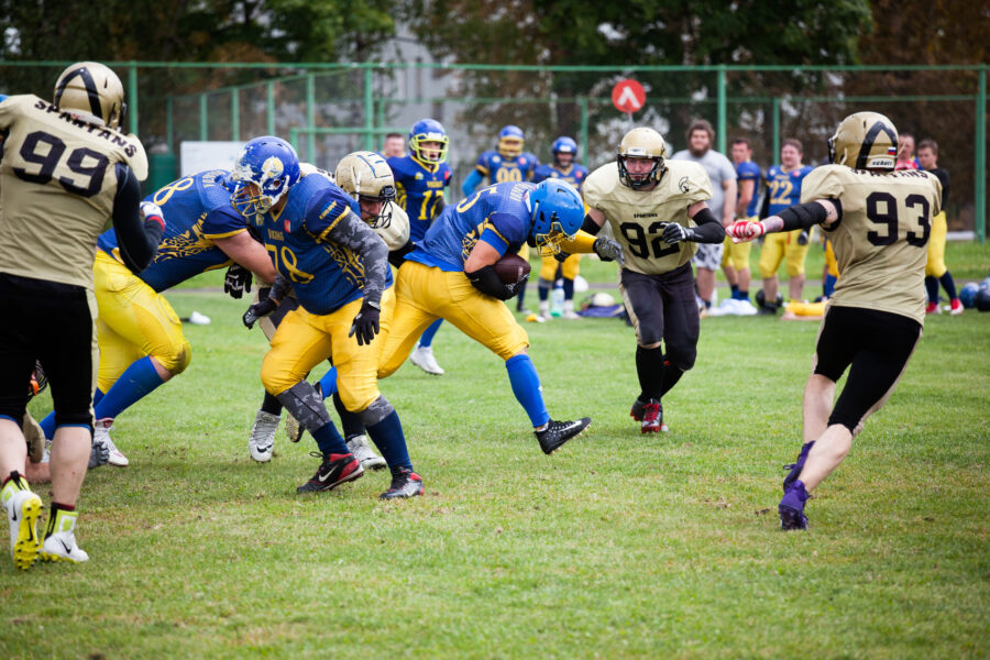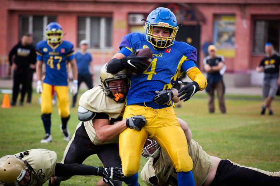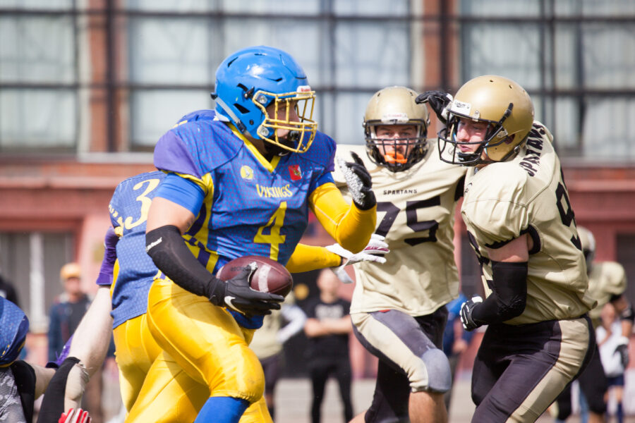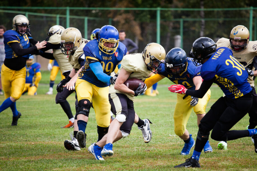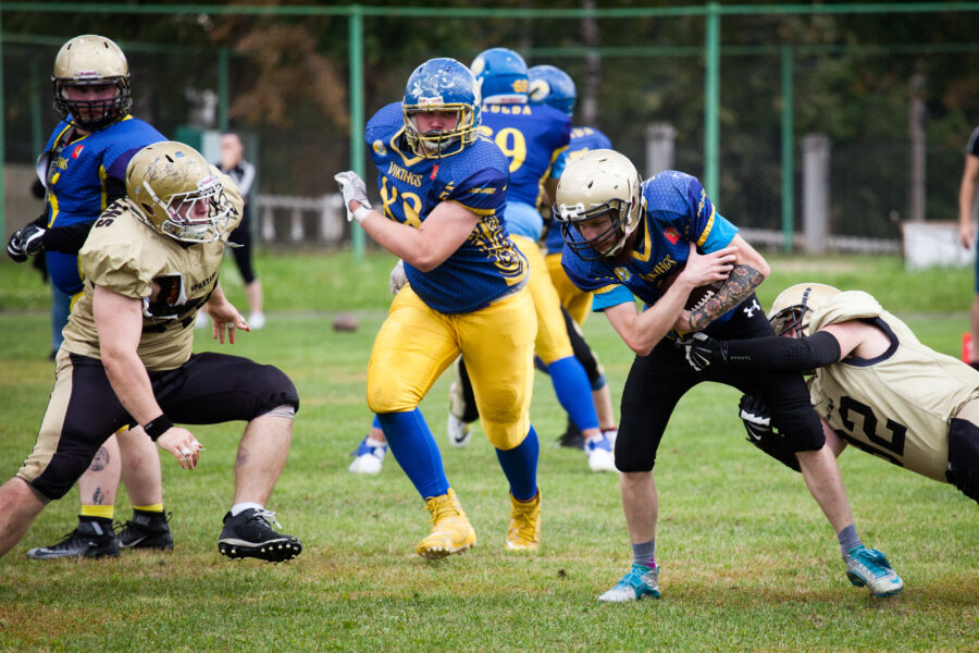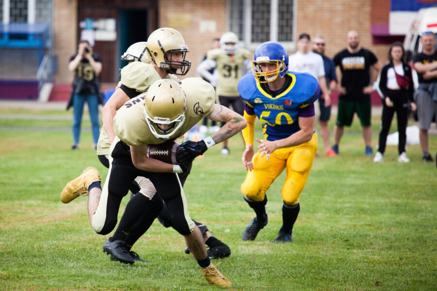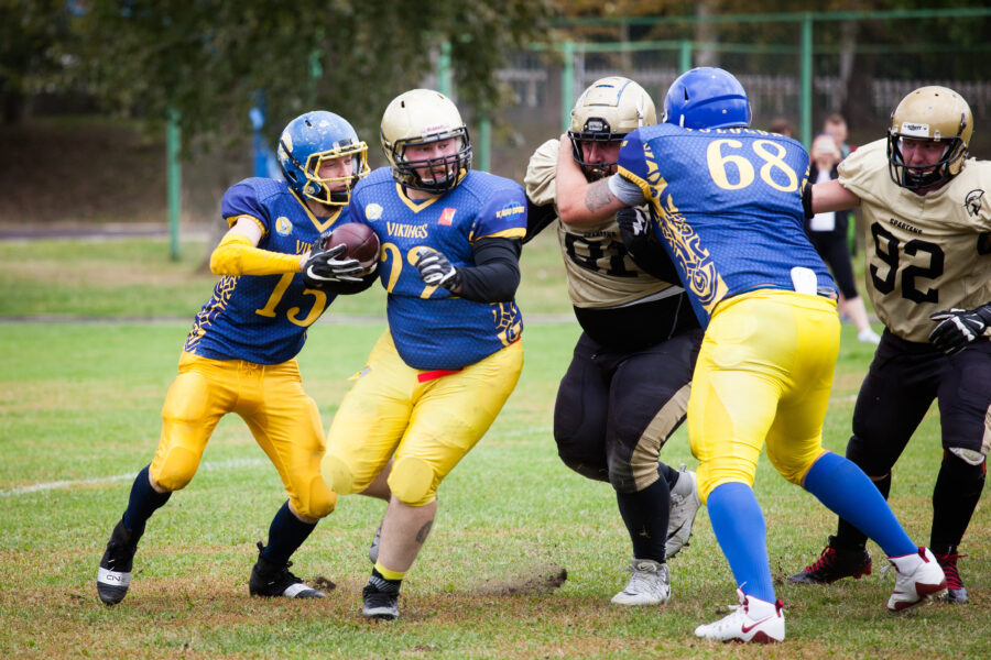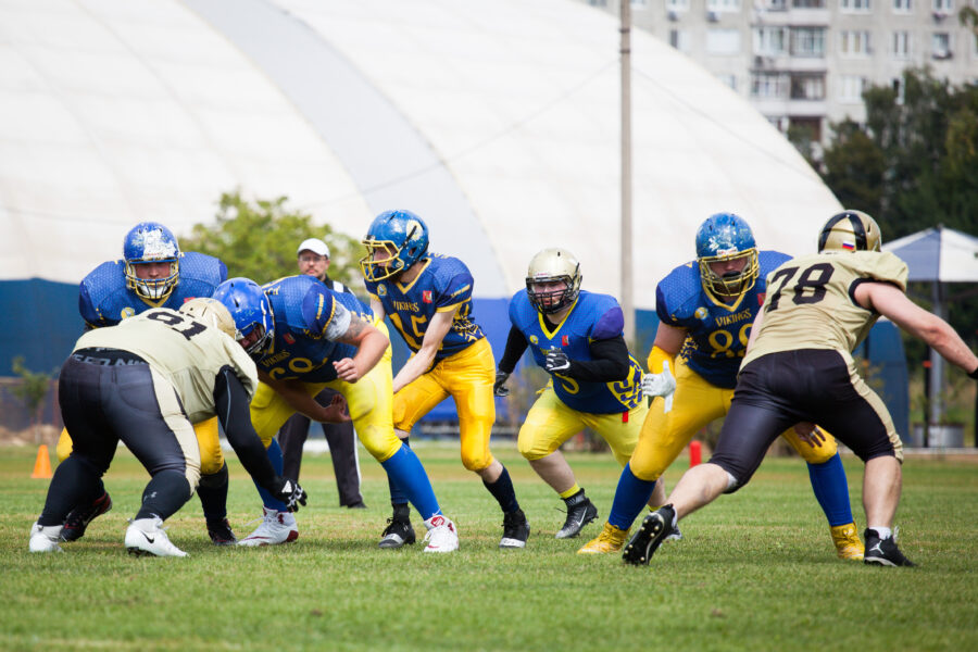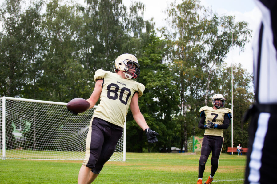 - Никита Шемякин, Владимир Платонов и Кирилл Святкин перед матчем 2-го тура Первой лиги чемпионата России между московскими «Спартанцами-2» и вологодскими «Викингами». 16 августа 2020 г., Дзержинский, Московская обл., Россия. Фото: Юрий Марин (First & Goal)