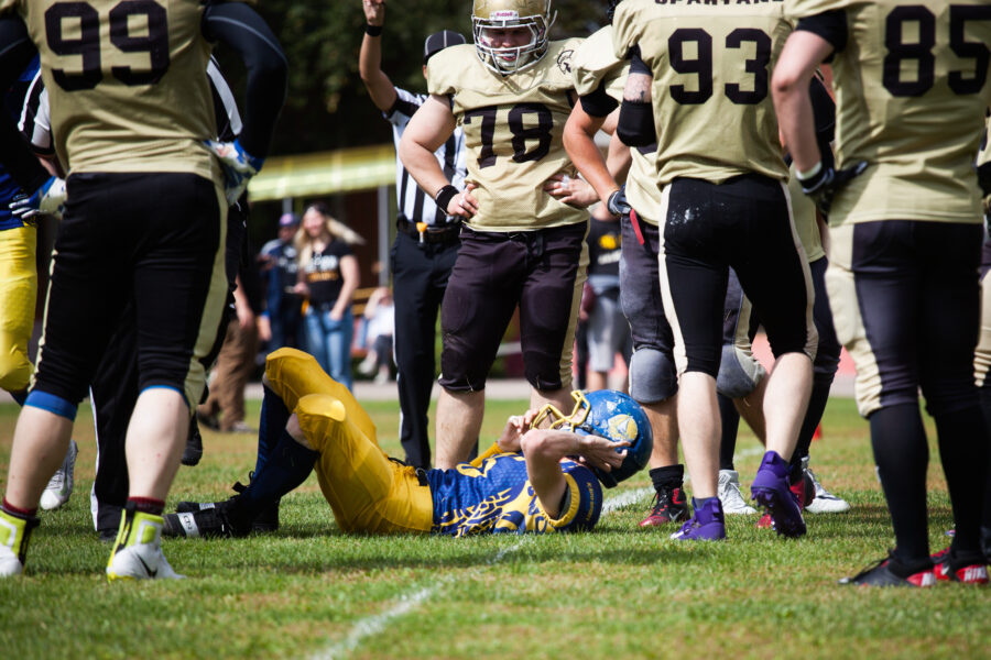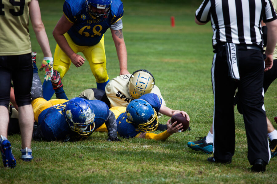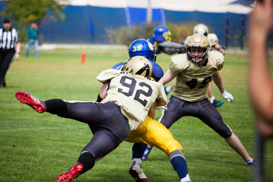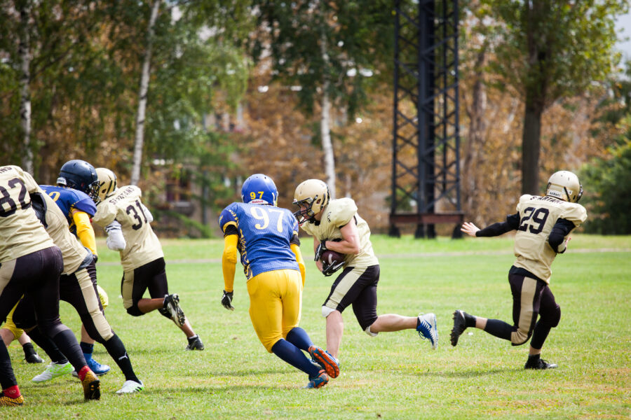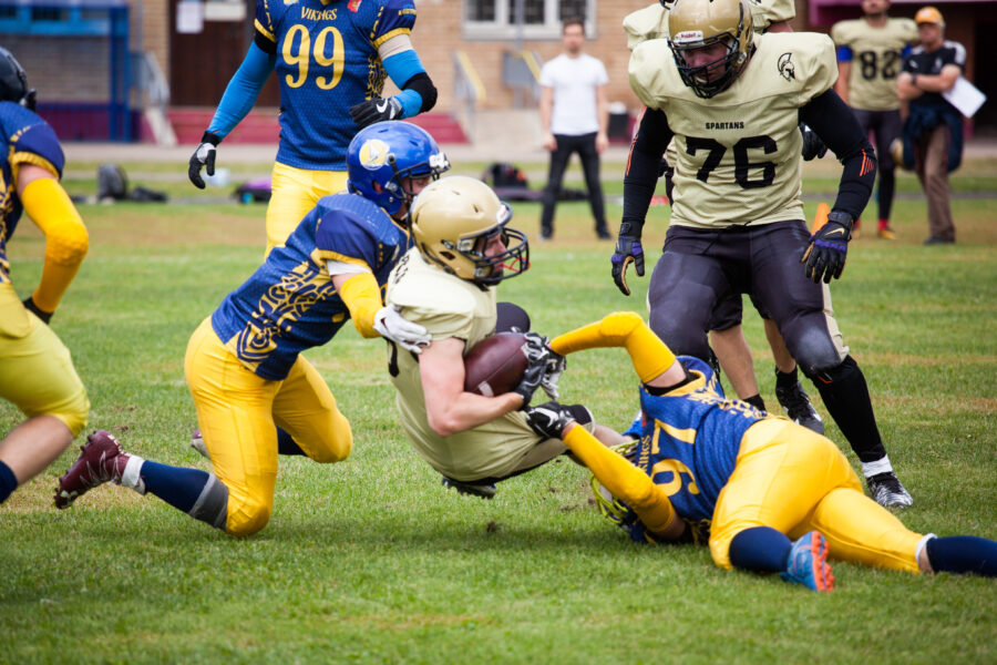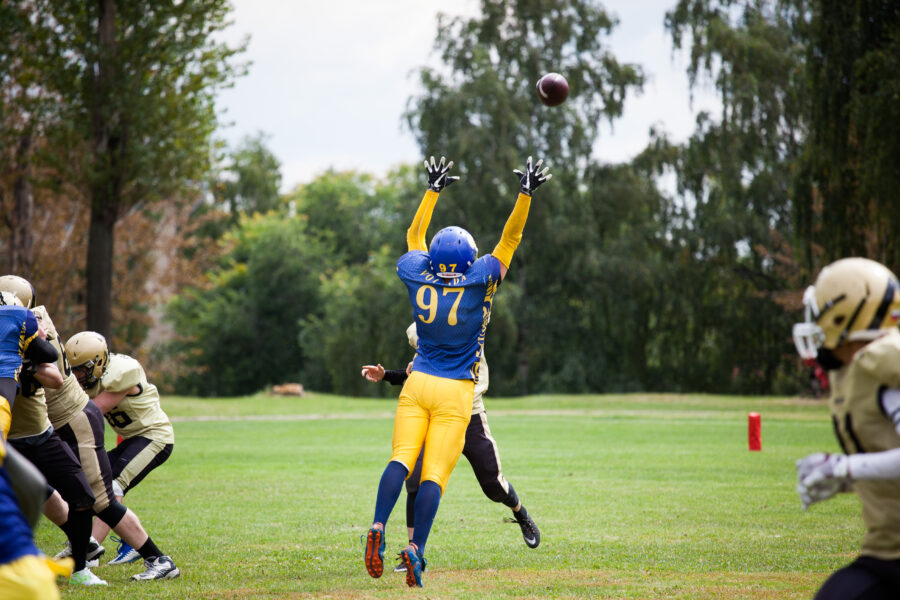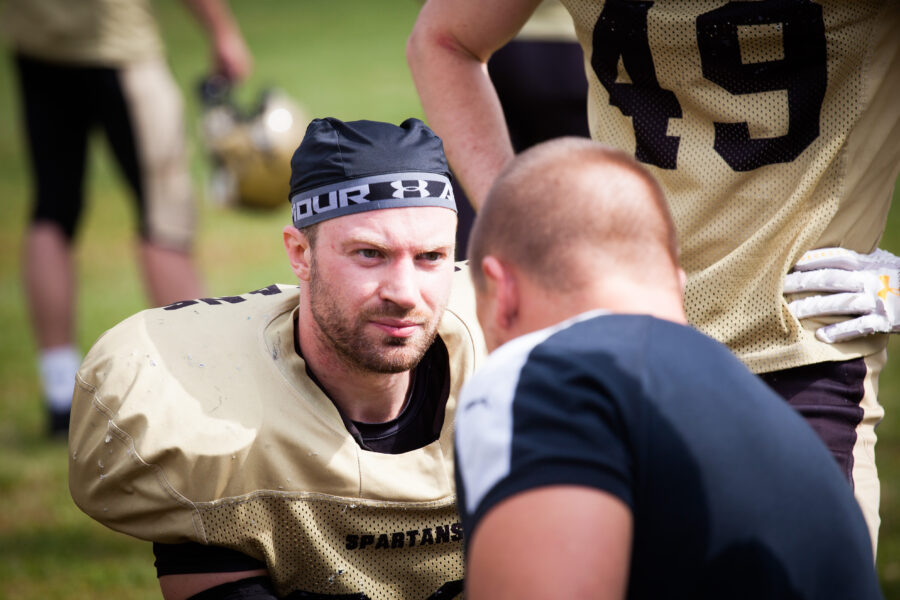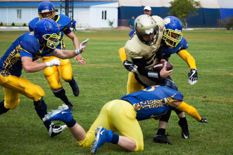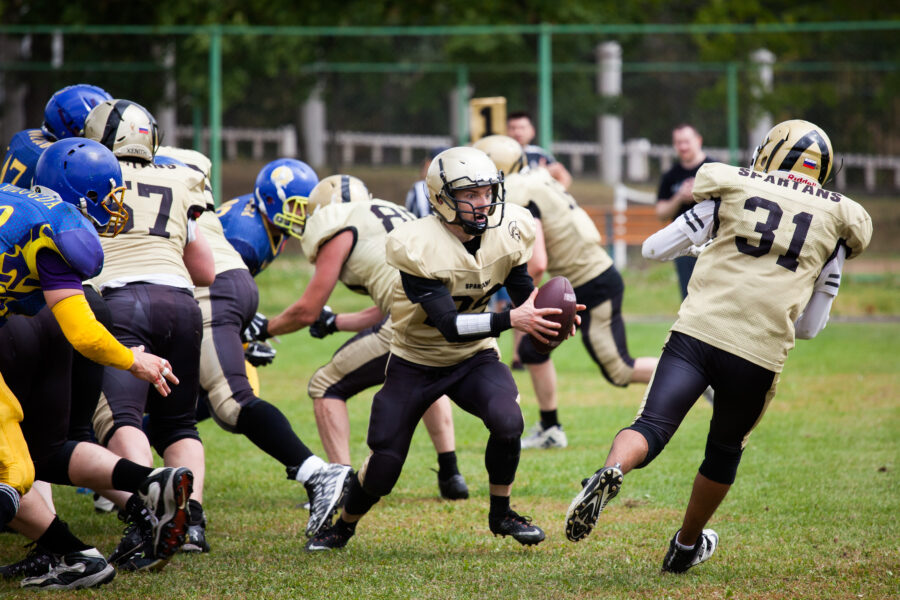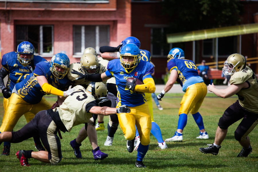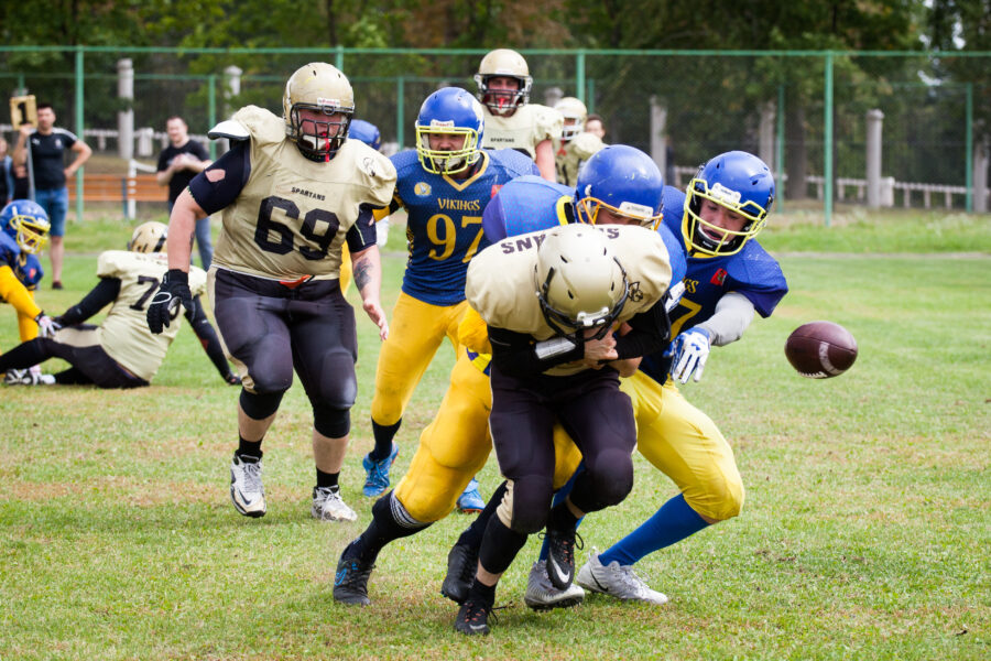- Никита Шемякин, Владимир Платонов и Кирилл Святкин перед матчем 2-го тура Первой лиги чемпионата России между московскими «Спартанцами-2» и вологодскими «Викингами». 16 августа 2020 г., Дзержинский, Московская обл., Россия. Фото: Юрий Марин (First & Goal)