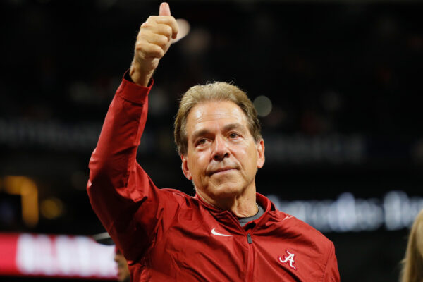ATLANTA, GA - DECEMBER 01: Head coach Nick Saban of the Alabama Crimson Tide reacts after defeating the Georgia Bulldogs 35-28 in the 2018 SEC Championship Game at Mercedes-Benz Stadium on December 1, 2018 in Atlanta, Georgia. (Photo by Kevin C. Cox/Getty Images)