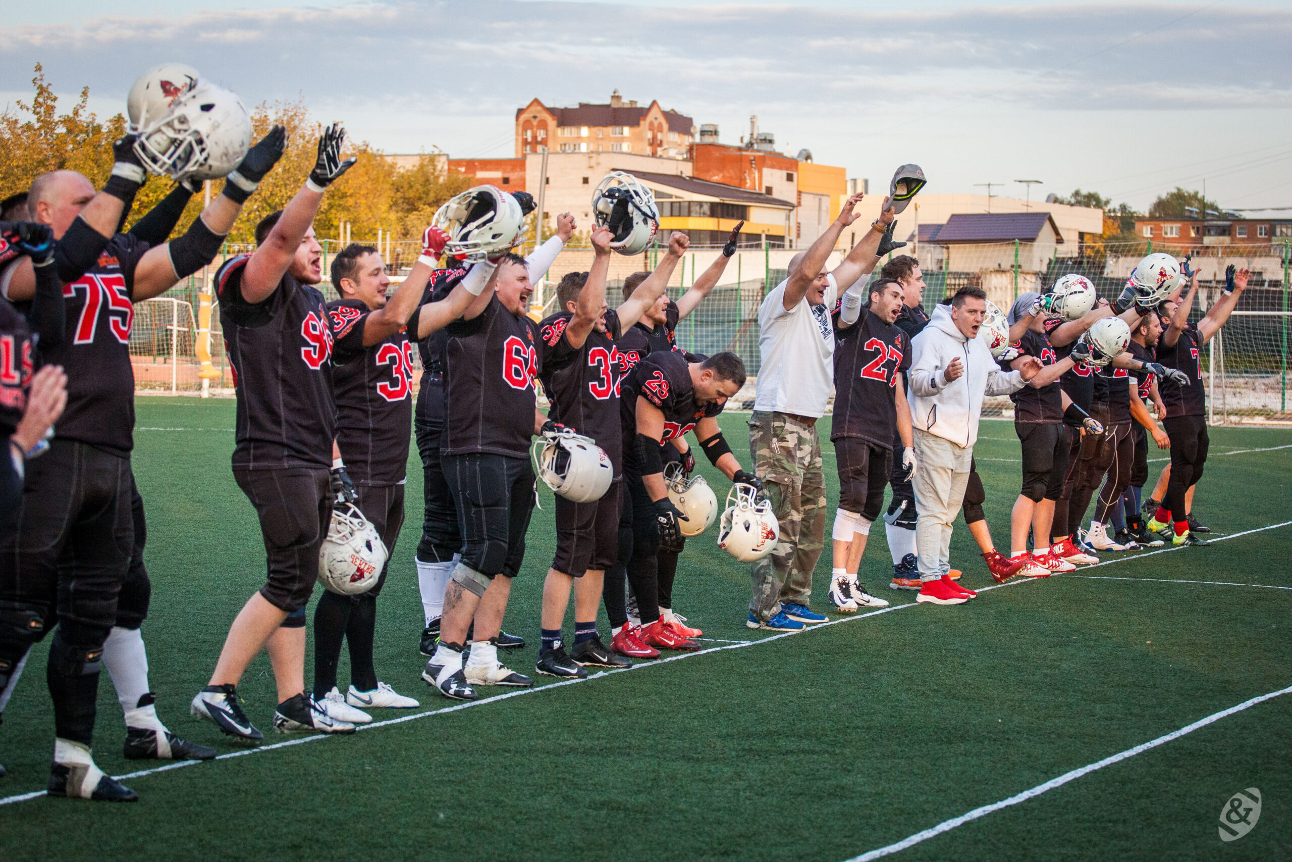 Михаил Бондаренко (#54) и Кирилл Корепанов (#35) в финале «Волга Боула» против «Стормбрингерс». 28 сентября 2019 г., Ижевск, Россия. Фото: Михаил Бормин и Яна Рафикова (sportur.ru)