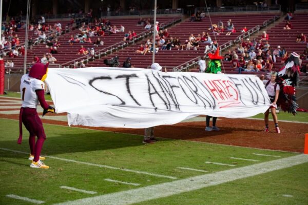 Университет Стэнфорда отстранил человека, исполнявшего обязанность талисмана команды, после того, как тот продемонстрировал баннер с надписью «Стэнфорд ненавидит веселье» во время матча «Кардинал» с «Аризоной Стейт».