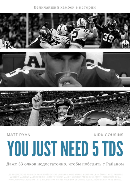 Первый раз мы такое видим, что одному и тому же фильму можно давать награды за лучшие спецэффекты и лучший сценарий. Как вообще такое могло прийти в голову — фамбл у своей зачётки, когда нужно всего лишь сделать сник? И этот совершенно невероятный приём Джастина Джефферсона! Да, кто-то скажет, что в жизни так не бывает, что это всего лишь кино, но ты веришь своим глазам.
